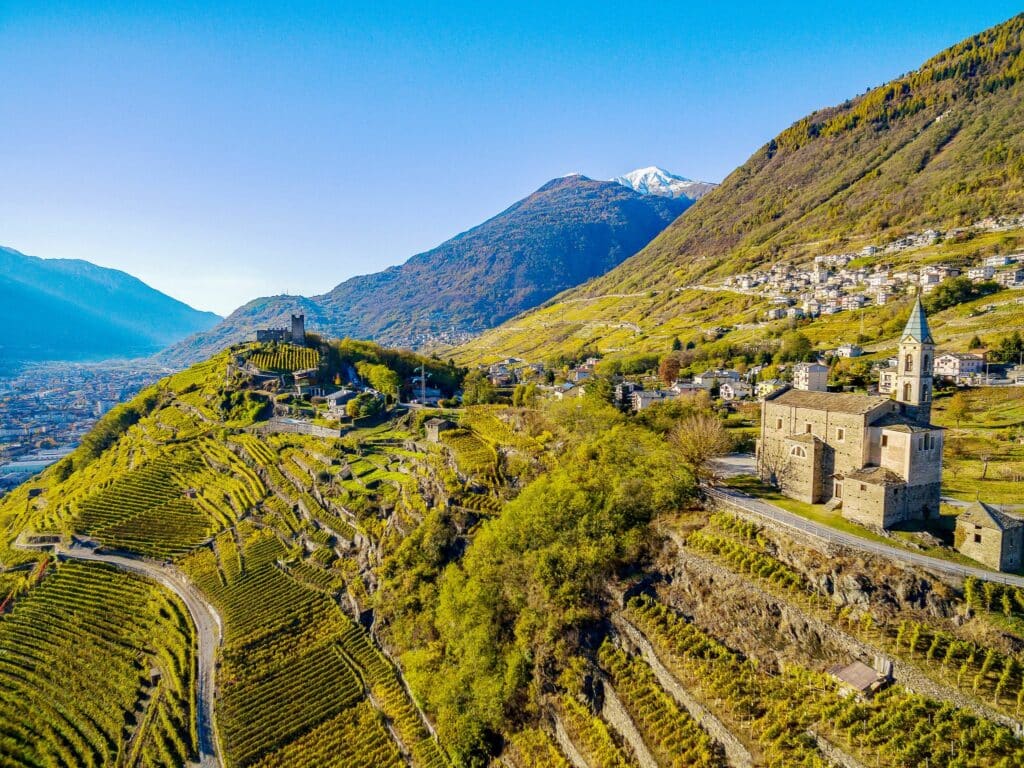 Sondrio/Valtellina: Sondrio Hauptort des Valtellina-Tals, dass sich durch die Alpen erstreckt und sich durch wunderschöne Natur-Landschaft zwischen dem Fluss Adda, Weinbergen und Bergen auszeichnet. Sondrio und die Region ist bekannt für die Weinproduktion, Historische Gebäude, Kirche, Paläste, und für mögliche Outdoor-Aktivitäten wie Wandern und Skifahren.