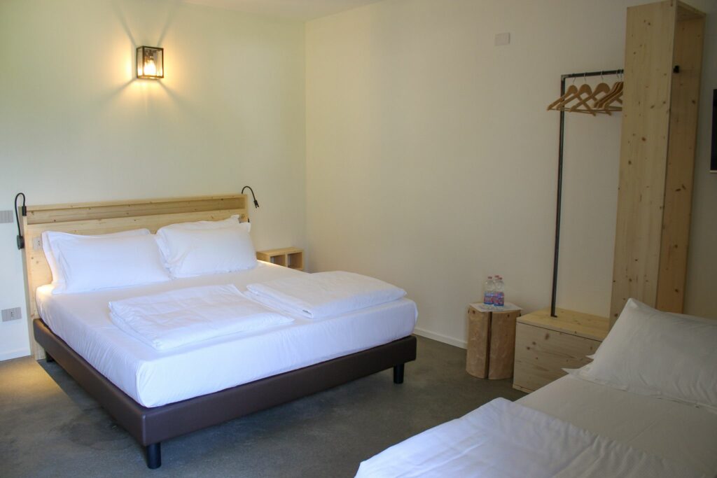 Das geräumige und komfortable Dreibettzimmer für drei Personenn bieten seinen Gästen alle Annehmlichkeiten, die einen angenehmen Aufenthalt garantieren. Dazu gehören bequeme Betten mit hochwertiger Bettwäsche, Klimaanlage, kostenfreies WLAN, Flachbildfernseher und ein eigenes Badezimmer mit kostenlosen Pflegeprodukten. Mit seinem rustikal bis modern reichende Dekor das auf die umliegende Landschaft abgestimmt ist, bietet das Zimmer mit seinen Holzmöbeln und der indirekte Beleuchtung ein modernes und entspannendes Flair.