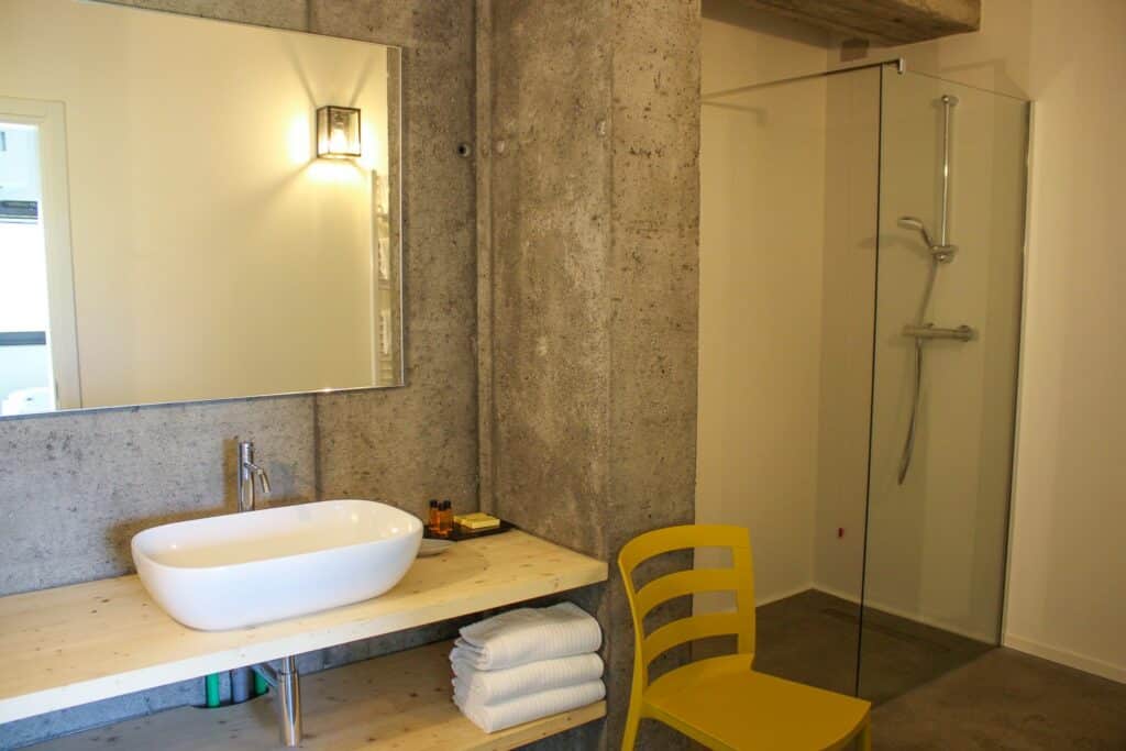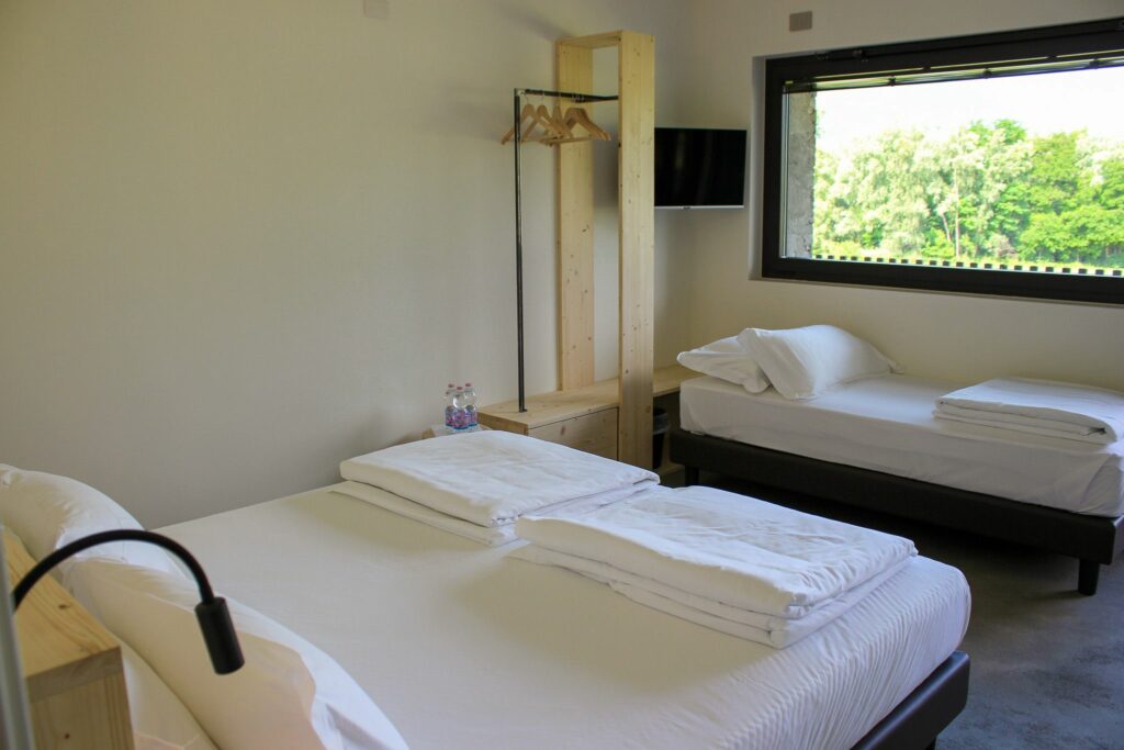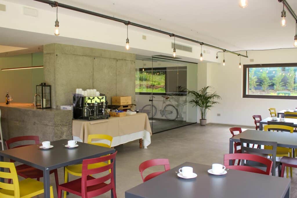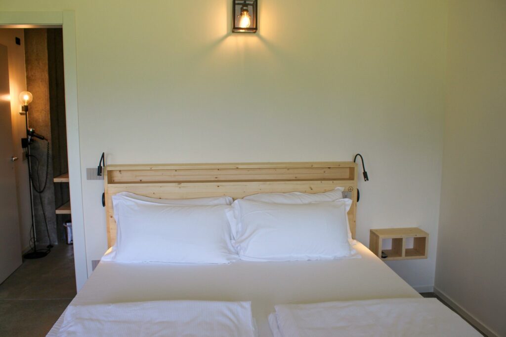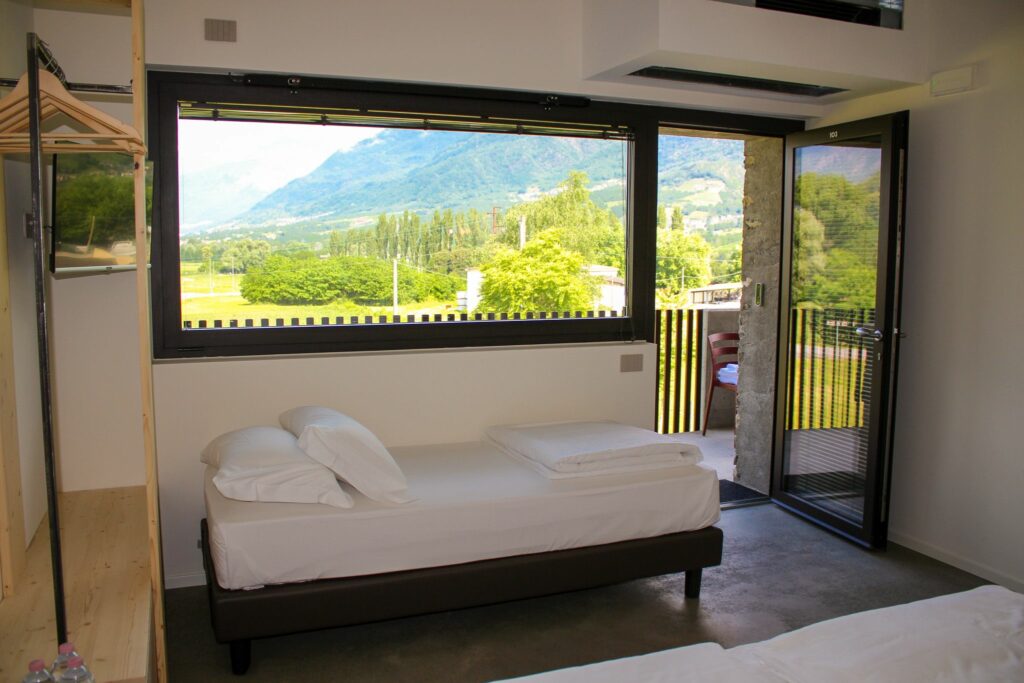 Das Zimmer hat große Fenster, die einen wunderschönen Blick auf die umliegenden Berge oder Weinberge bieten, um den Gästen eine einzigartige Erfahrung zu bieten und den Blick auf die umliegende Natur genießen können. Jeden Morgen erwartet die Gäste ein kleines italienisches Frühstücksbuffet.