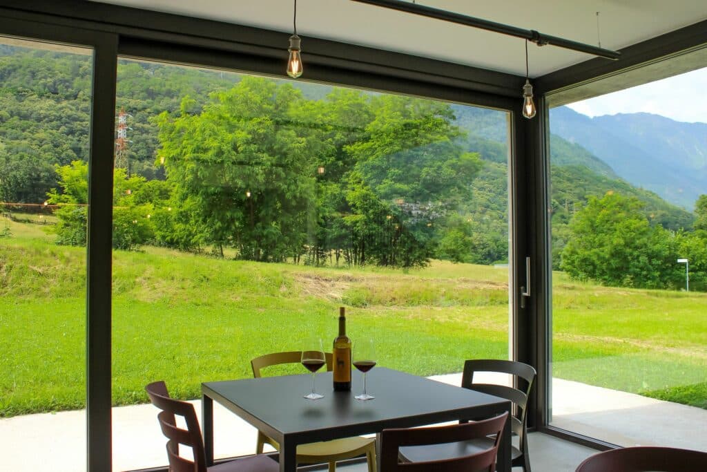 Verbringen Sie Ihren Urlaub in Caiolo, nur wenige Kilometer von Sondrio entfernt im Valtellina-Tal. Das Hotel ist von einer malerischen Landschaft aus Bergen, Wiesen und Weinbergen umgeben ist und verfügt über eine lange Tradition im eigenen Weinanbau. Mit einem Mix aus Holz, Stein und Beton fügt sich das moderne Haus nahtlos in die Landschaft ein, ohne seinen traditionellen Charme zu verlieren.