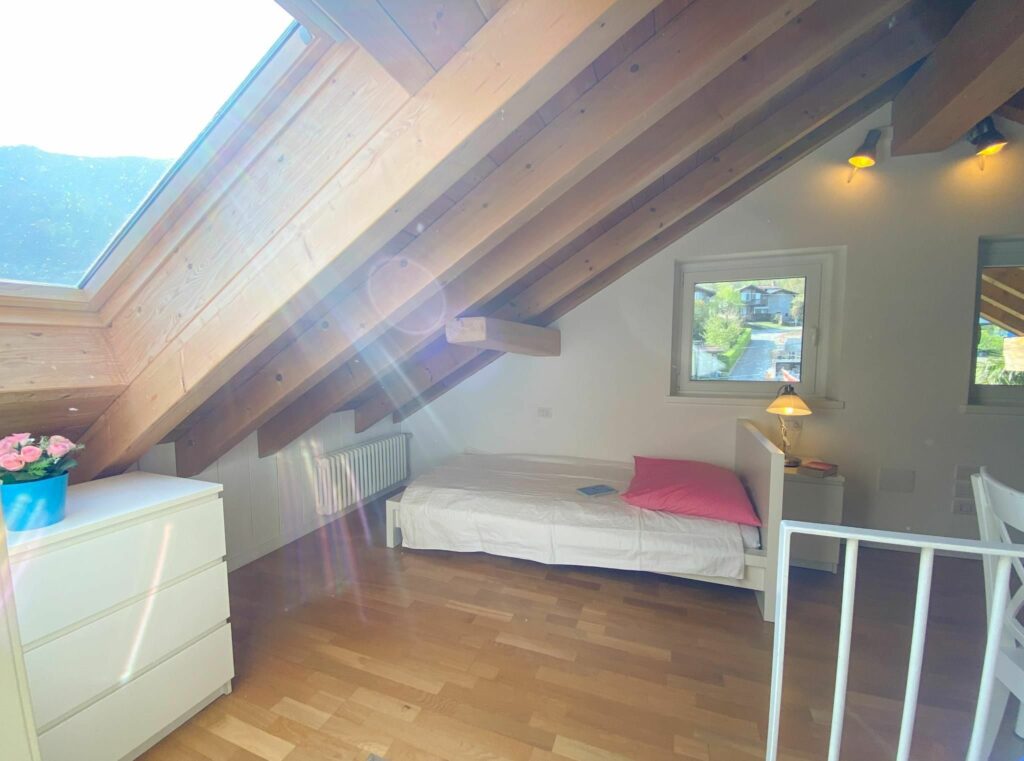 Die Mansarde hat teilweise eingeschränkte Raumhöhe.