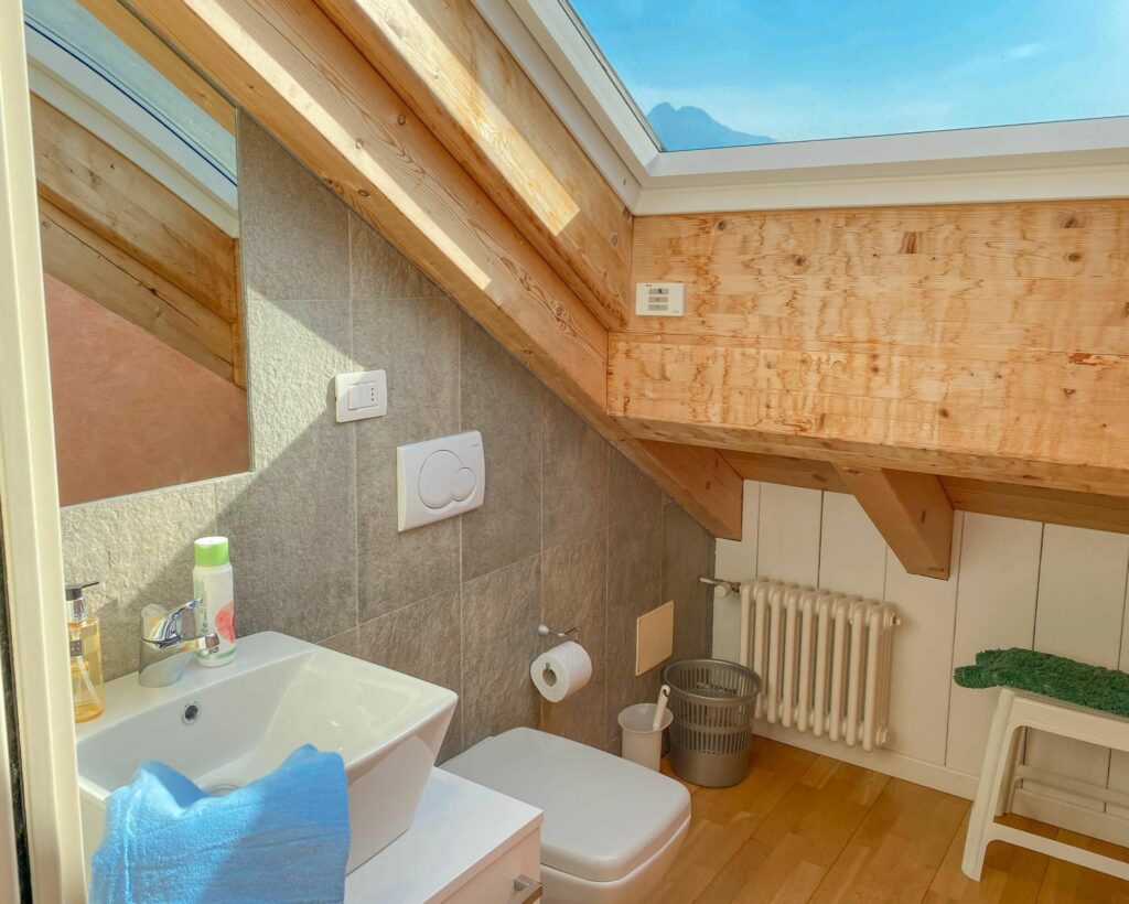 Heller, rustikaler und gemütlicher Einrichtungsstil. Wohn- und Schlafräume mit schönen Holz- oder Fliesenböden, Bäder mit lombardischen Natursteinen und hellen Fliesen.