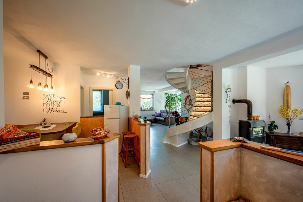 Das Erdgeschoss ist ein offener Raum: Rechts vom Eingang befindet sich das Esszimmer mit Leseecke; auf der linken Seite befindet sich eine große Küche mit Halbinsel, zur Verfügung alle Küchenutensilien, die für die Zubereitung von Gerichten nützlich sind.