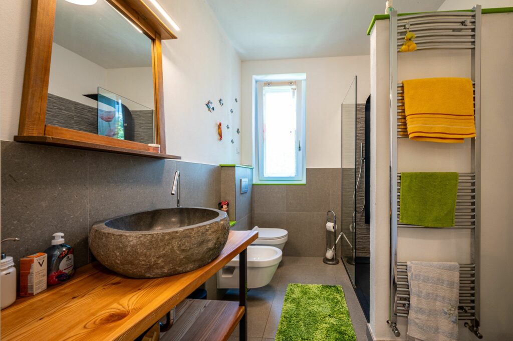 Das Haus bietet eine wunderschöne Aussicht auf die umliegenden Berge und auf den See von der oberen Terrasse aus. Der Zugang zum See und Strand ist nur 20 Meter entfernt und auch das Ortszentrum ist bequem zu Fuß erreichbar.