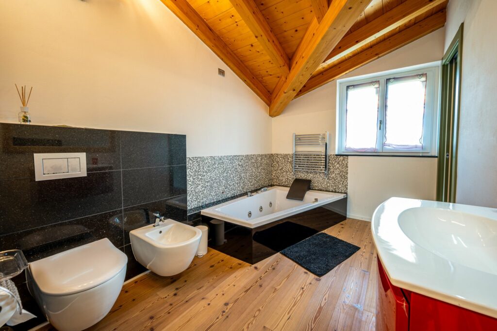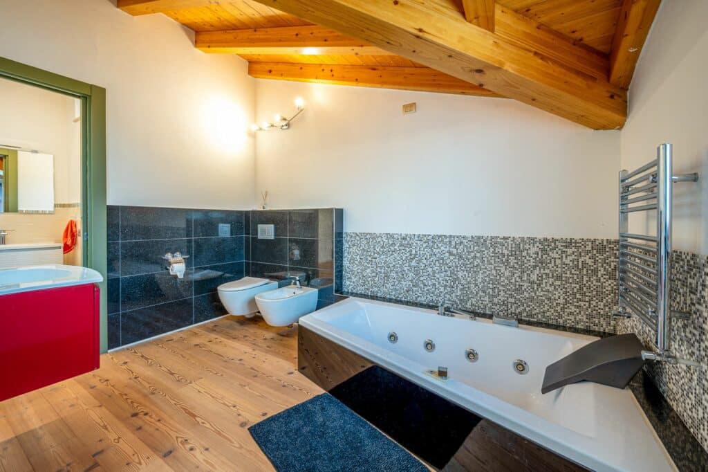 Das geräumige Badezimmer ist mit einer hochwertigen Whirlpool-Badewanne ausgestattet die für maximale Entspannung sorgt.