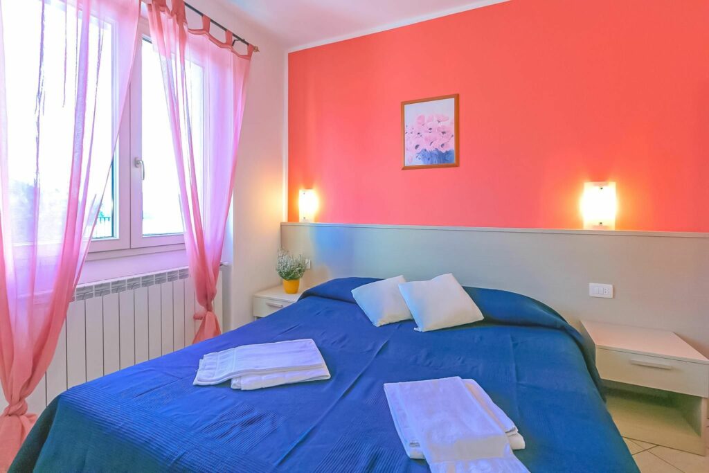 Ein Dreibettzimmer, zwei Zweibettzimmer (Betten zusammenstellbar), die alle teilweise Seeblick haben, bieten Platz für die ganze Familie. Die große, teilüberdachte Natursteinterrasse bildet zusammen mit dem kleinen Privatgarten einen hübschen Außenbereich mit Esstischgarnitur und Liegestühlen.