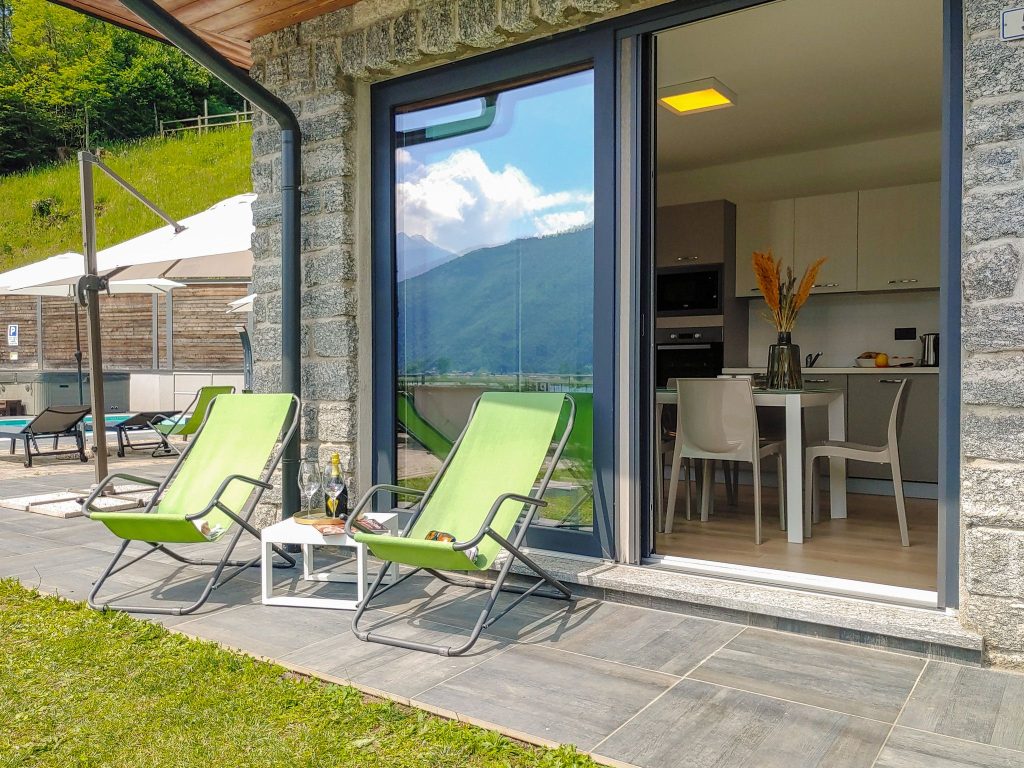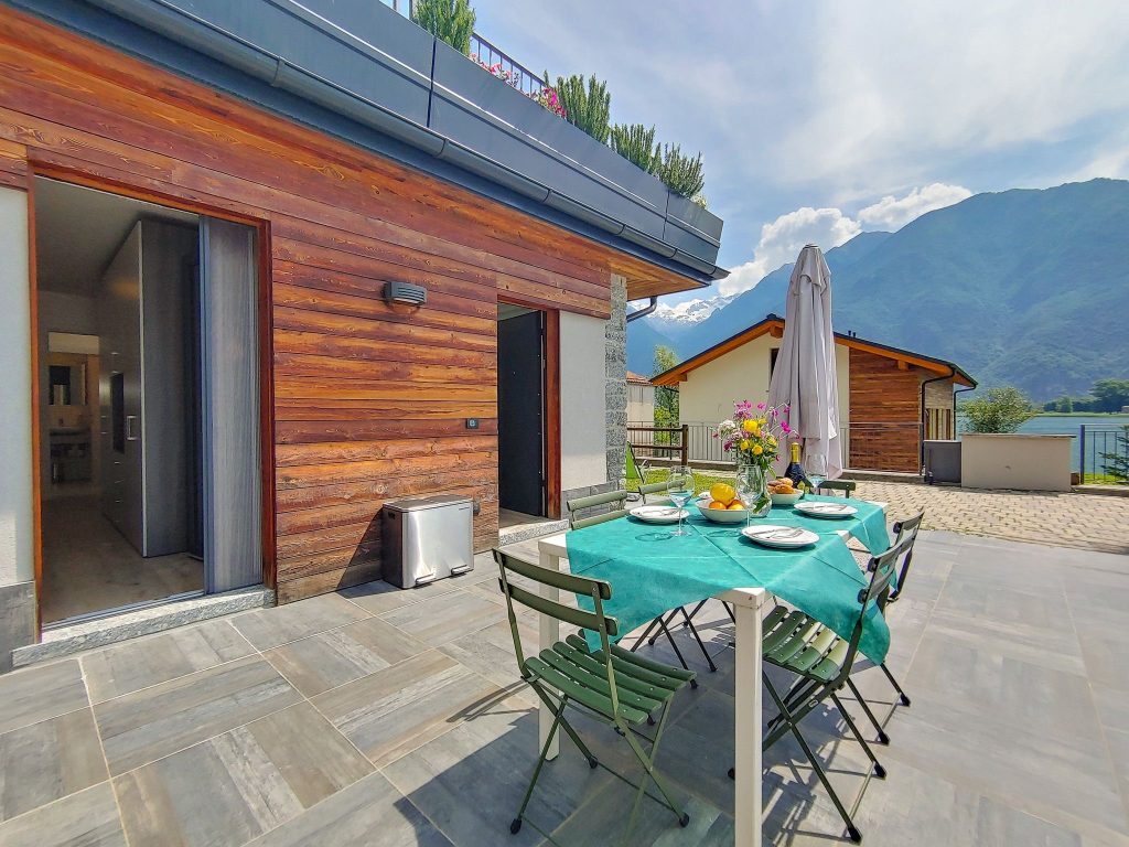 Die Ferienresidenz Dascio mit insgesamt 8 Ferienwohnungen liegt in Nachbarschaft zu dem kleinen Uferort Dascio am Mezzola See, im größten Naturschutzgebiet der Lombardei, Pian di Spagna, der Ausläufer des Comer Sees.Eine Urlaubsoase direkt am Seeufer mit Panoramablick auf den See und die umliegende Bergwelt. Die Uferstraße führt in das Dorf Dascio mit zwei bekannten Fischrestaurants, ca. 700 m danach endet die Straße. Ihr Urlaubsdomizil ist umgeben von viel Natur: der See, ein Vögelbeobachtungs- und Sportrevier zugleich: Rudern, Kanufahren, Stand-up-Paddeln. Wiesen seeseitig, Felshänge bergseitig, und vereinzelt Wohnhäuser in der Nachbarschaft. Zur Seeseite ist der unterwasserbeleuchtete Pool mit Liegestühlen und das Jacuzzi. Am Seeufer ist der Liegestuhlbereich und der Esstischbereich mit Barbecue. Bootsliegeplatz auf Anfrage.