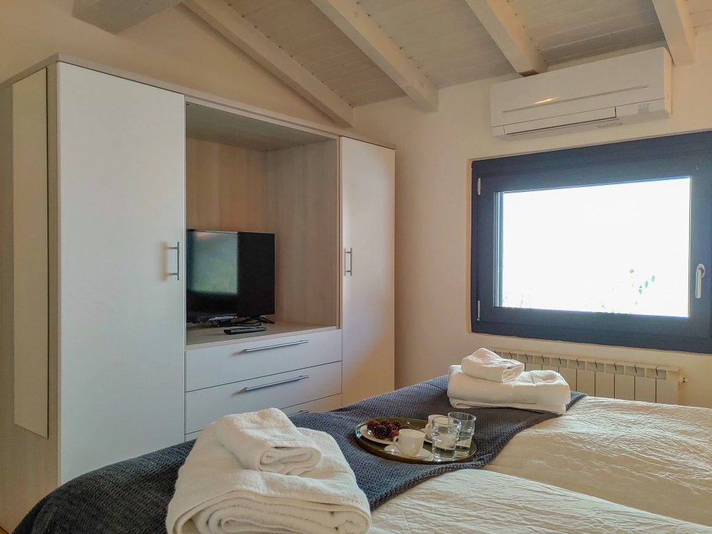 Die Ferienwohnung Salute besticht durch einen hellen und freundlichen Einrichtungsstil, der hochwertige Möbel mit modernem lombardischen Flair vereint. Die Böden sind aus stilvollen Holzdesign-Fliesen gestaltet.