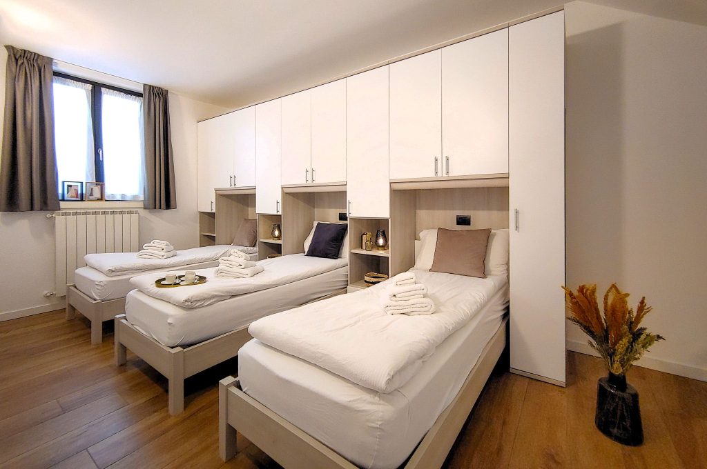 Schlafzimmer 2: 3 Einzelbetten, offenes Fußende