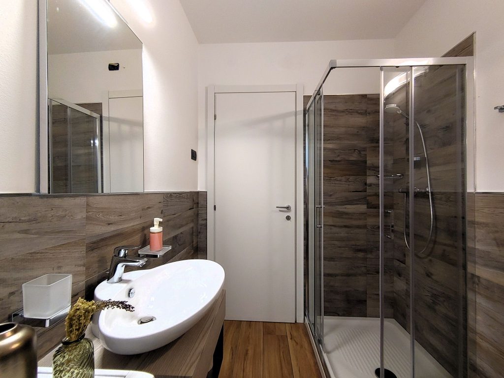 Die Ferienwohnung Vita besticht durch einen hellen und freundlichen Einrichtungsstil, der hochwertige Möbel mit modernem lombardischen Flair kombiniert. Die Böden sind mit stilvollen Holzdesign-Fliesen ausgelegt.