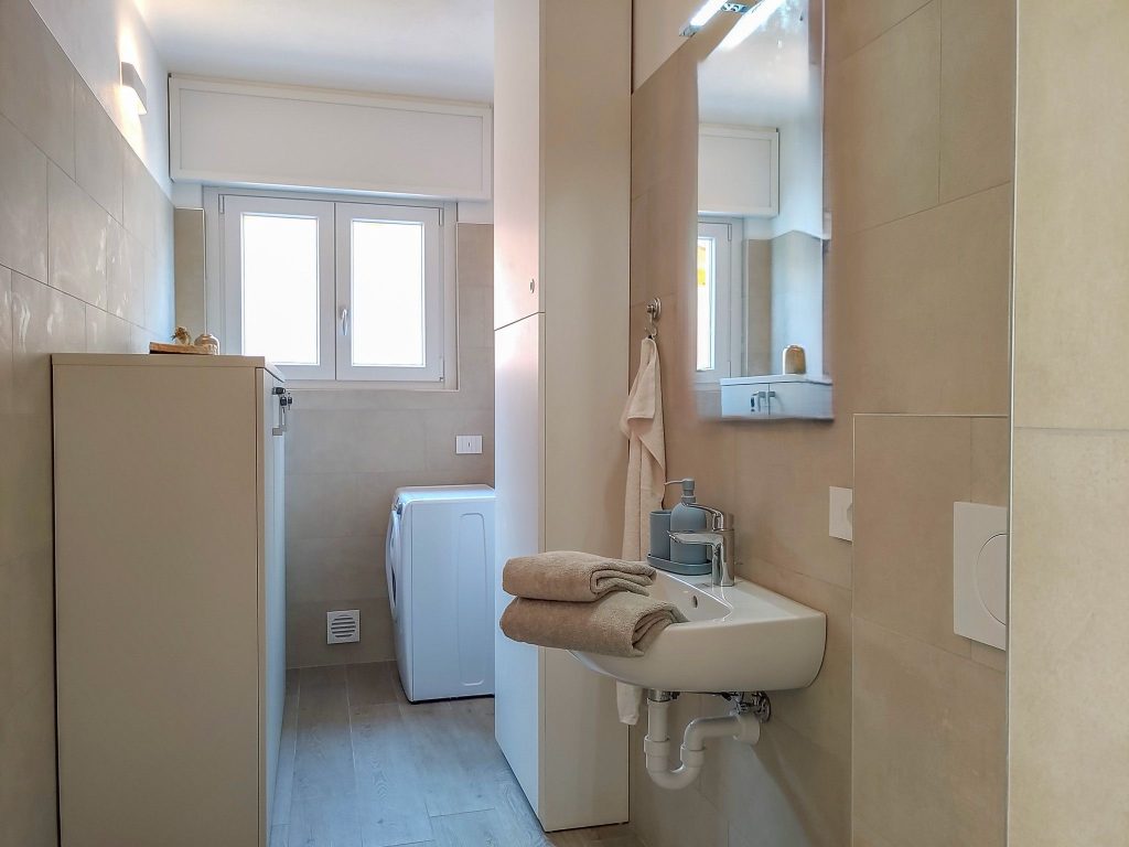 Die Wohnung liegt in einer erholsamen Wohngegend, ideal für entspannte Ferien. Viele Annehmlichkeiten sind bequem zu Fuß oder mit dem Fahrrad erreichbar. Ein Supermarkt und Restaurants sind nur etwa 300 Meter entfernt. Der See und flache naturbelassene Strände sind über die Via Regina zu Fuß erreichbar in nur 700 Metern.