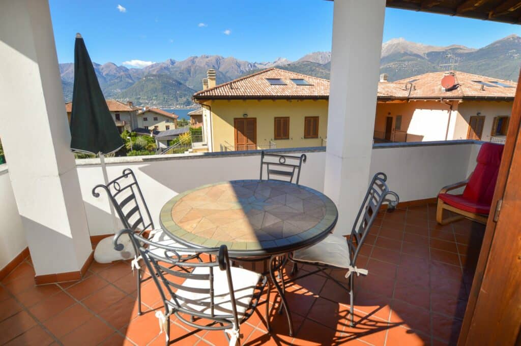 Oberhalb von Colico in dem hübschen Ortsteil Villatico. Mit Blick auf den See und die umliegende Bergkulisse. Jeweils mit möblierten Garten- und Balkonbereichen. Mit vielen Gelegenheiten zum Sonnenbaden, gemütlichem Beisammensein oder schönen Grillabenden. In der Nachbarschaft befinden sich Wohnhäuser und vereinzelt private Ferienhäuser. Die Ortskirche ist ca. 150 m und vom Rustico ca. 50 m entfernt. Unterhalb des Anwesens ist ein Rustico auch zur Vermietung.