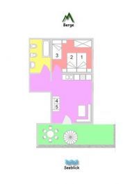 Liegestühlen, Sonnenschirm und Gartengrill. Zur Seeseite ist ein breiter Balkon. Oberhalb des Pools ist das Ferienhaus Casa Bellavista mit vier Wohneinheiten. Der Pool werden von den Gästen beider Häuser gemeinsam genutzt.