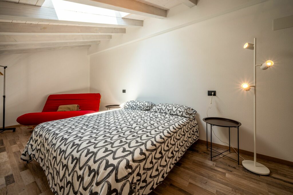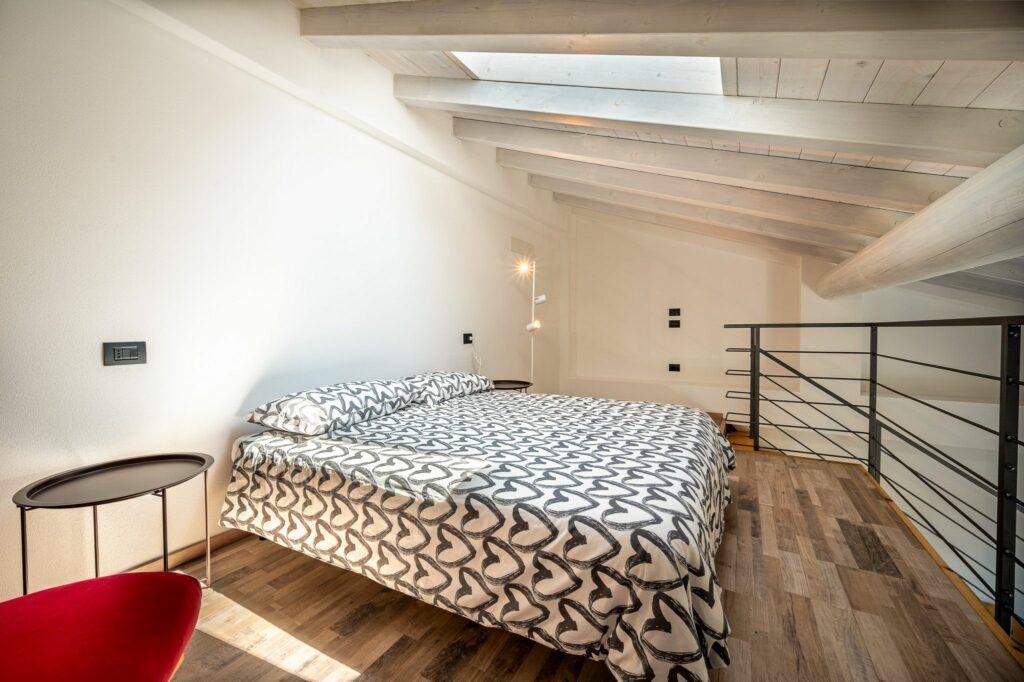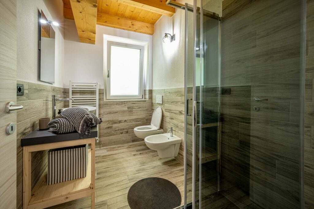 Auf der selben Ebene befindet sich außerdem das Badezimmer mit Waschtisch, Dusche, WC und Bidet. Eine Treppe führt Sie hinauf zur Schlafgalerie, in der sich ein komfortables Doppelbett befindet.