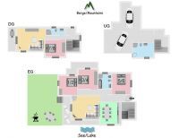 Schlafbereich: 3 Doppelzimmer gartenseitig, zwei mit Zugang zum Balkon, modernes Bad mit Dusche. zweites Bad mit Dusche befindet sich auf der Gartenebene.