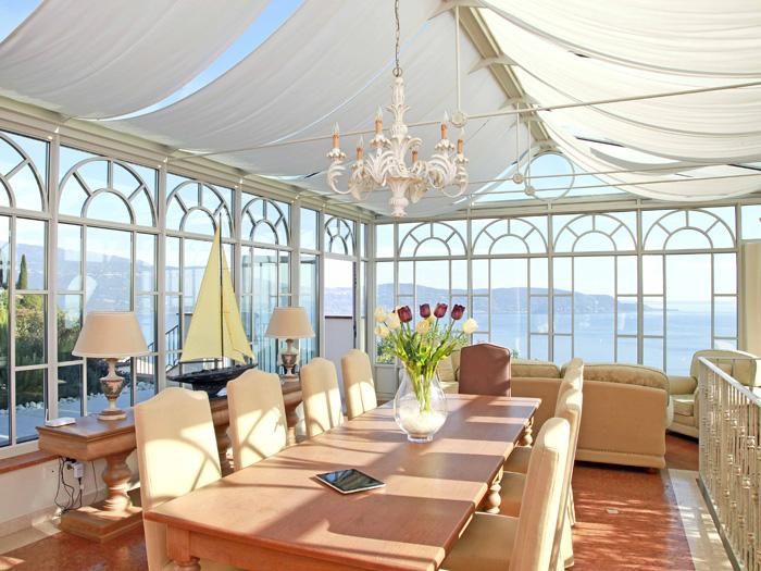 Die interessante, architektonische Aufteilung und geschmackvolle Gestaltung der Räume machen Ihren Aufenthalt zum Wohnerlebnis. Im EG befindet sich der große, lichtdurchflutete Wohn- und Essbereich mit großer Tafel und gemütlicher Sitzgruppe. Große Panorama-Glasfronten eröffnen Ihnen vom Wintergarten aus über die Terrasse hinweg einen herrlichen Blick auf den See. Im rückwärtigen Bereich des Wintergartens befindet sich die großzügig geschnittene Küche. Sie ist modern und komfortabel ausgestattet u.a. mit einem großen Profi-Gasherd, Espressomaschine und Weinkühlschrank. Für gemütliche Abende gibt es eine