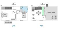 La zona pranzo e un angolo TV con due poltrone invitano al relax. La luce penetra attraverso le due grandi finestre e le travi a vista del tetto creano un ambiente arioso. Una scala piastrellata conduce alla zona notte con due camere matrimoniali con vista sul lago e un bagno accogliente con doccia, lavabo e WC/bidet. Una camera da letto ha un balcone di lettura che si affaccia sul lago.